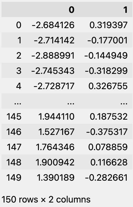 # 4つの説明変数の主成分を分析し(fit)、2つの説明変数に削減(transform)。